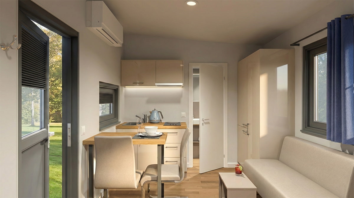 So schön könnte jeder Tag in Ihrem Prima Tiny beginnen. Verwirklichen Sie jetzt Ihren Traum vom eigenen Feriendomizil mit einem Tiny House inklusive Grundstück und Ausstattung.