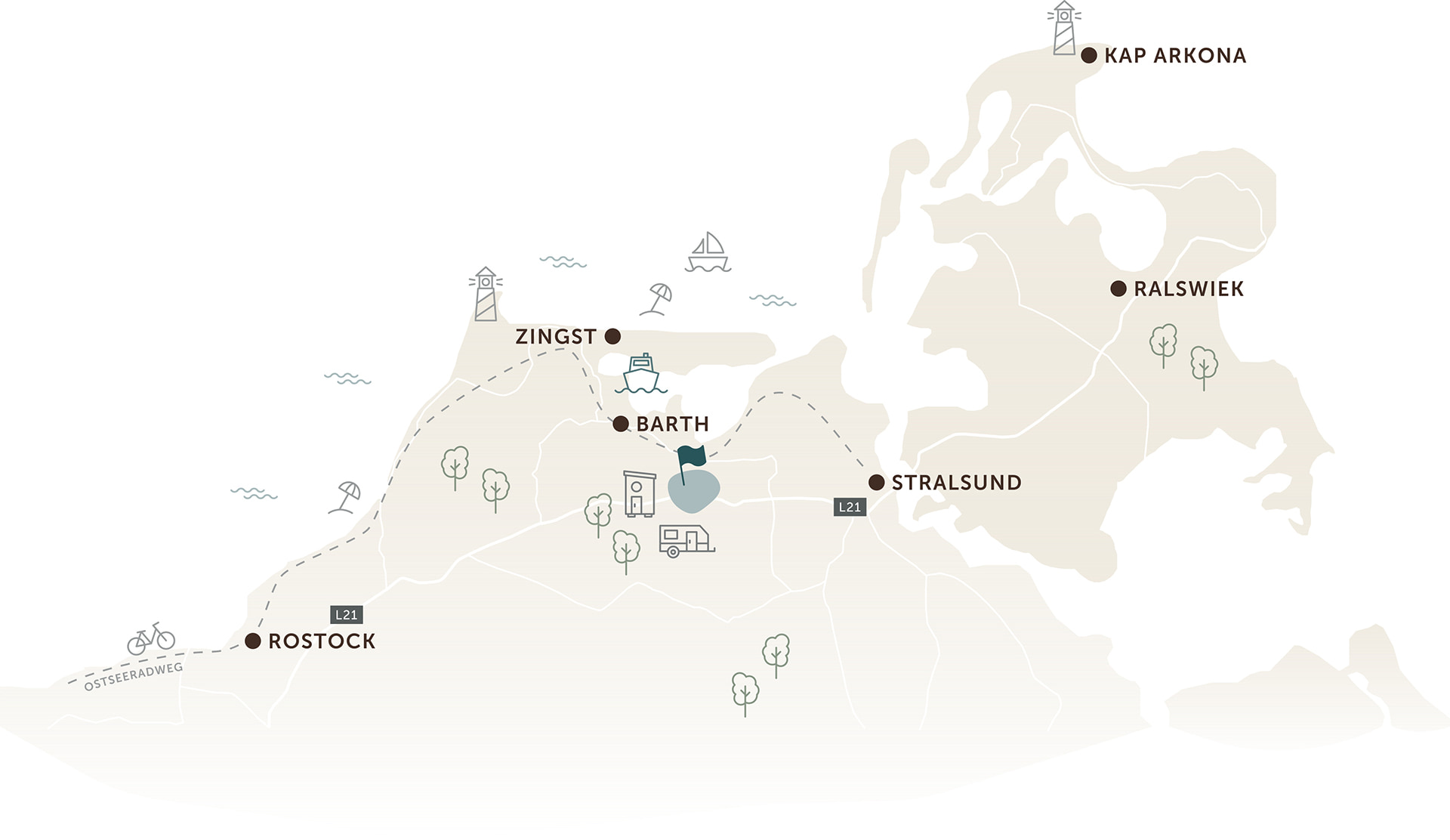 Die ersten Sonnenstrahlen glitzern auf dem Wasser des Barther Boddens und Sie hören das sanfte Rauschen des Windes über den Feldern. Öffnen Sie die Haustür Ihres eigenen kleinen Reichs und genießen Sie den ersten Kaffee mitten in der Natur.