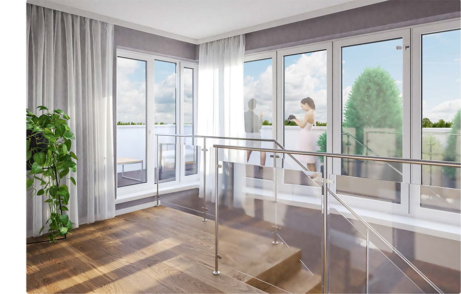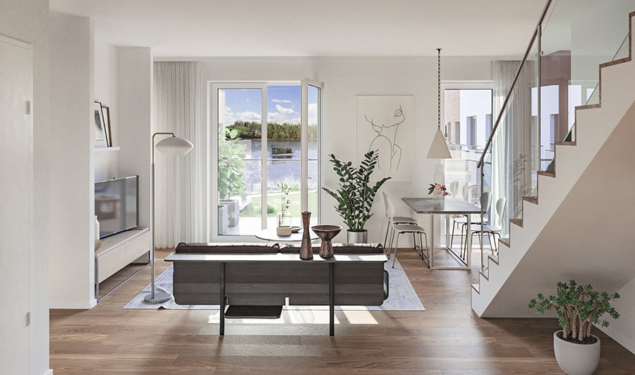Willkommen auf Ihrem Wohntraum am Ruppiner See. Die Wohnungen erstrecken sich über zwei Etagen bis ins Galeriegeschoss.