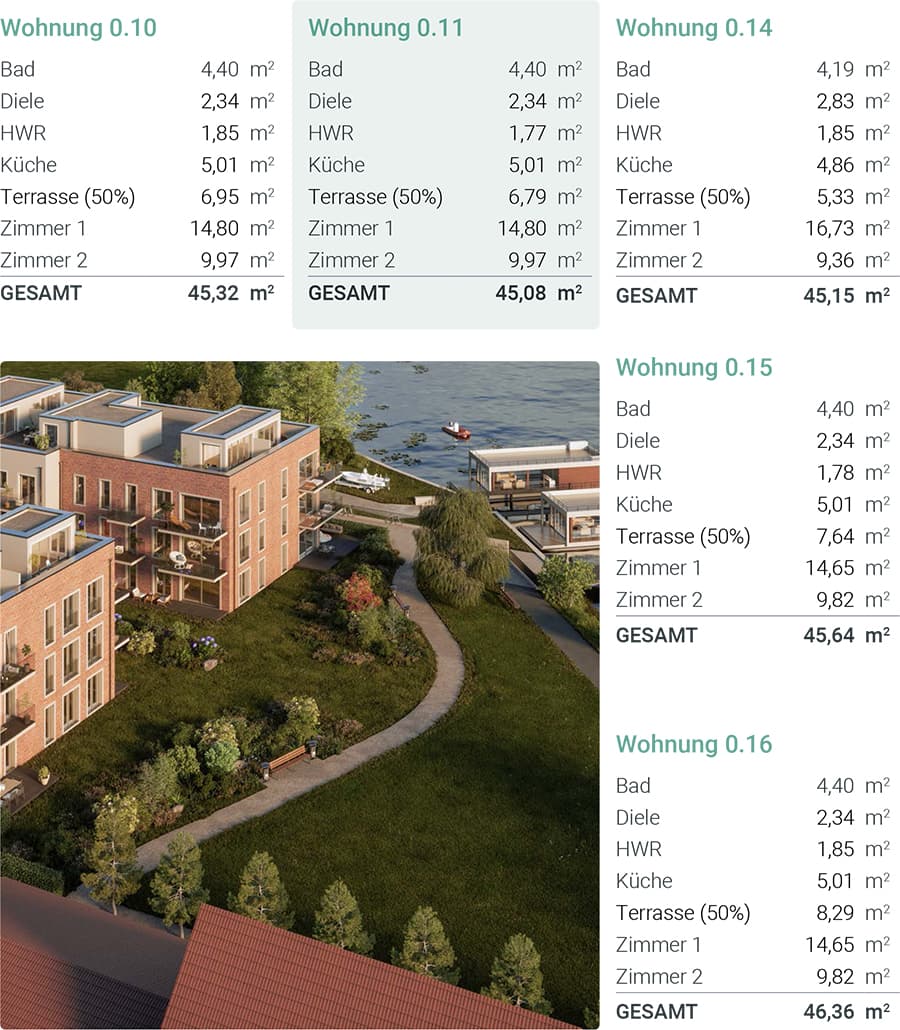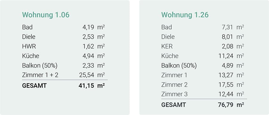 - Wohnflächen von ca. 45 m² bis ca. 77 m²