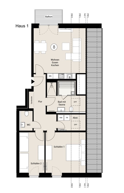 Ein Highlight dieser Wohnung ist der geräumige Balkon, der zum Entspannen einlädt und die Möglichkeit bietet, frische Luft zu genießen. Für Wellnessliebhaber ist die integrierte Sauna ein besonderes Plus, die nach einem langen Tag für Entspannung sorgt.