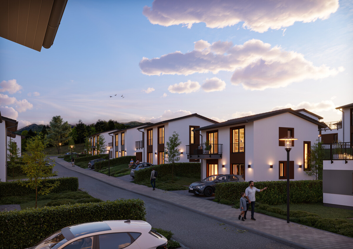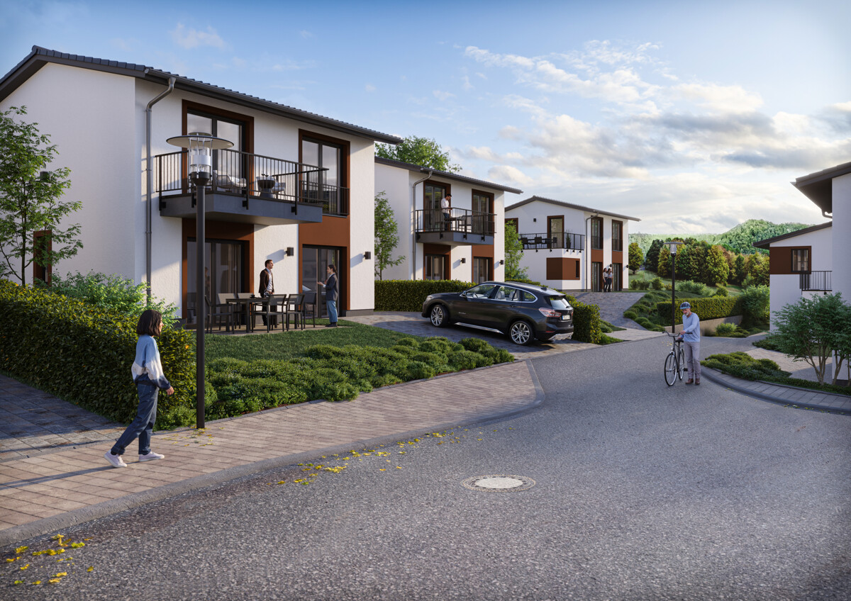 Im Winter locken verschneite Wälder, Wellnessangebote und ruhigere Naturerlebnisse. Kleine Erschließungsstraßen und gepflegte Grünflächen verleihen dem Quartier eine besonders freundliche Atmosphäre.