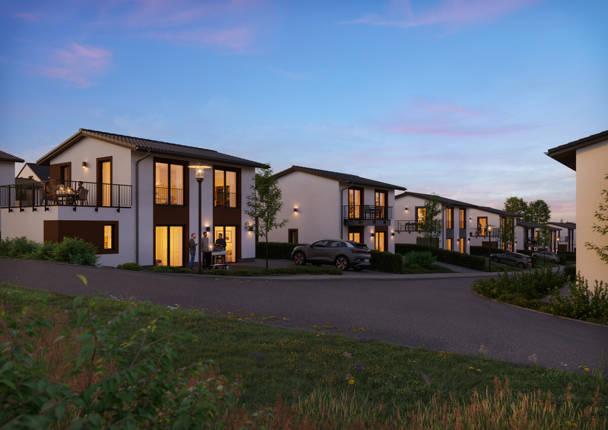 Im Winter locken verschneite Wälder, Wellnessangebote und ruhigere Naturerlebnisse. Kleine Erschließungsstraßen und gepflegte Grünflächen verleihen dem Quartier eine besonders freundliche Atmosphäre.