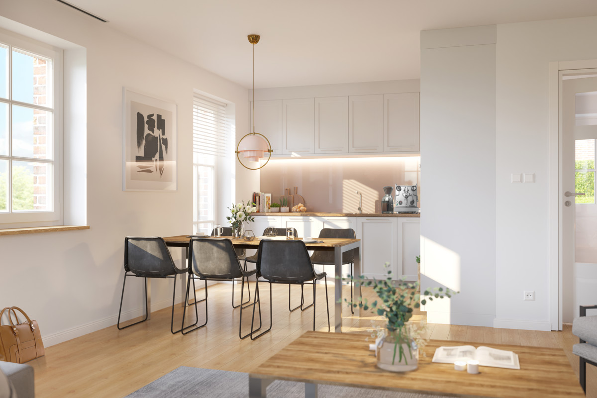 Die markanten Krüppel-Walmdächer gepaart mit den einladenden Giebelfassaden runden das Gesamtbild der idyllischen und exklusiven „Reetdachvillen am Schloss“ harmonisch ab.